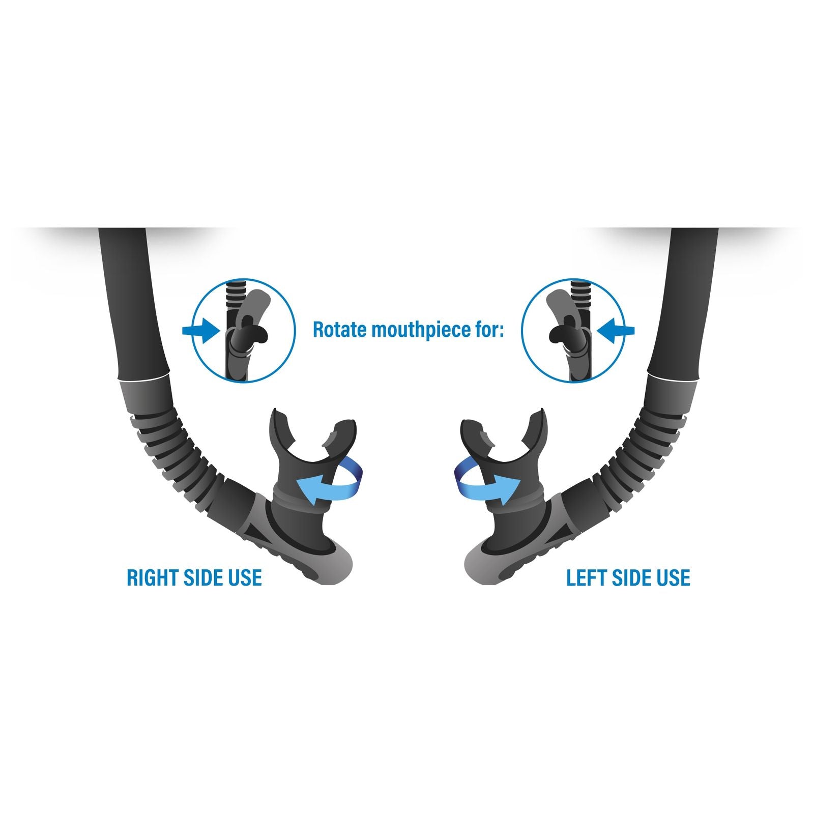- Sección corrugada: Permite a los buceadores alejar el snorkel del rostro, evitando el contacto con el regulador.