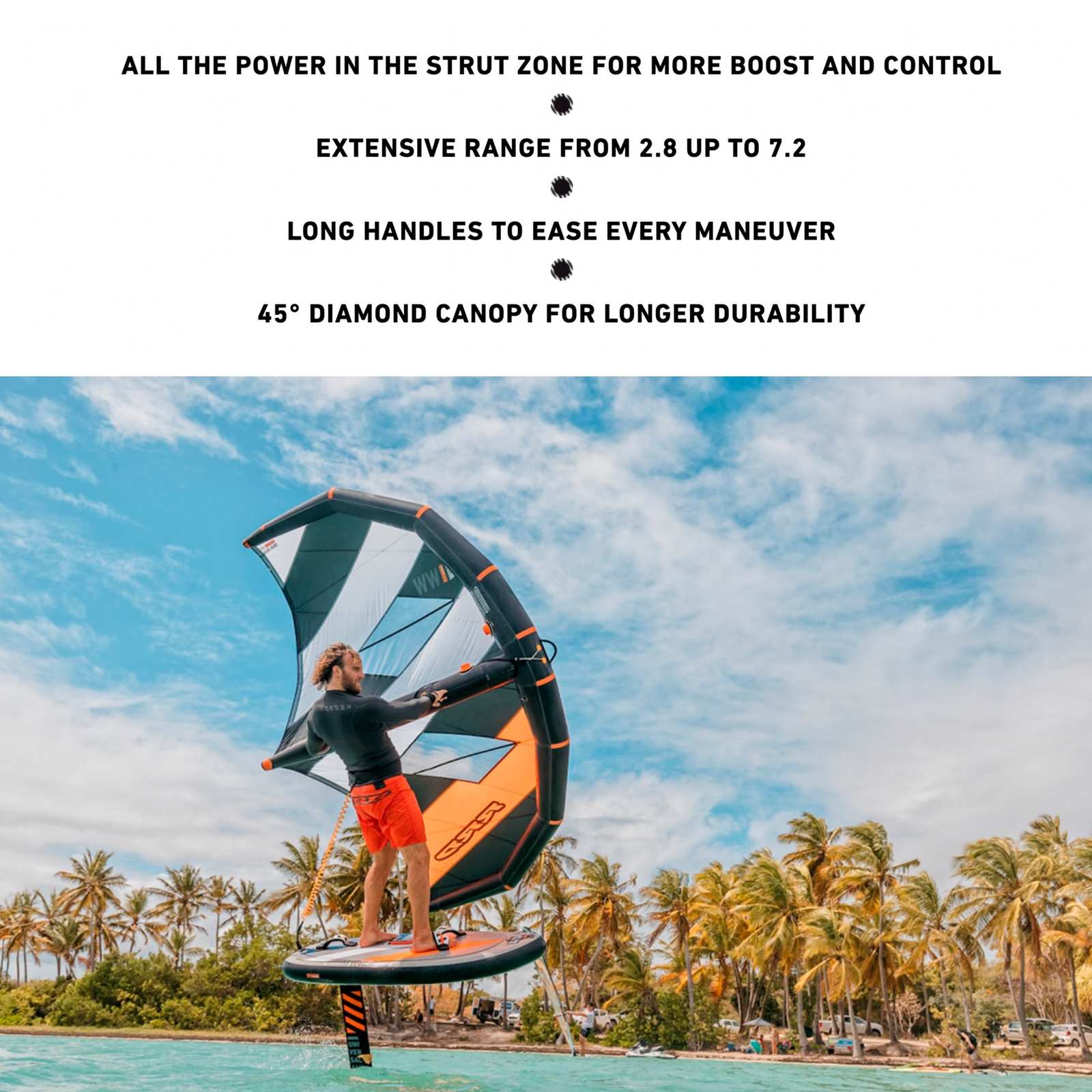Este producto es ideal para usuarios de nivel recreativo a avanzado que buscan disfrutar del wing foiling en diversas condiciones. Perfecto para actividades en aguas abiertas y entornos con viento moderado a fuerte, el Wing Foil Wind RRD está diseñado para maximizar la diversión y el rendimiento. Se recomienda combinarlo con tablas como Beluga o Air Beluga y bombas como Flash Pump o U-Pump para una experiencia completa y satisfactoria.