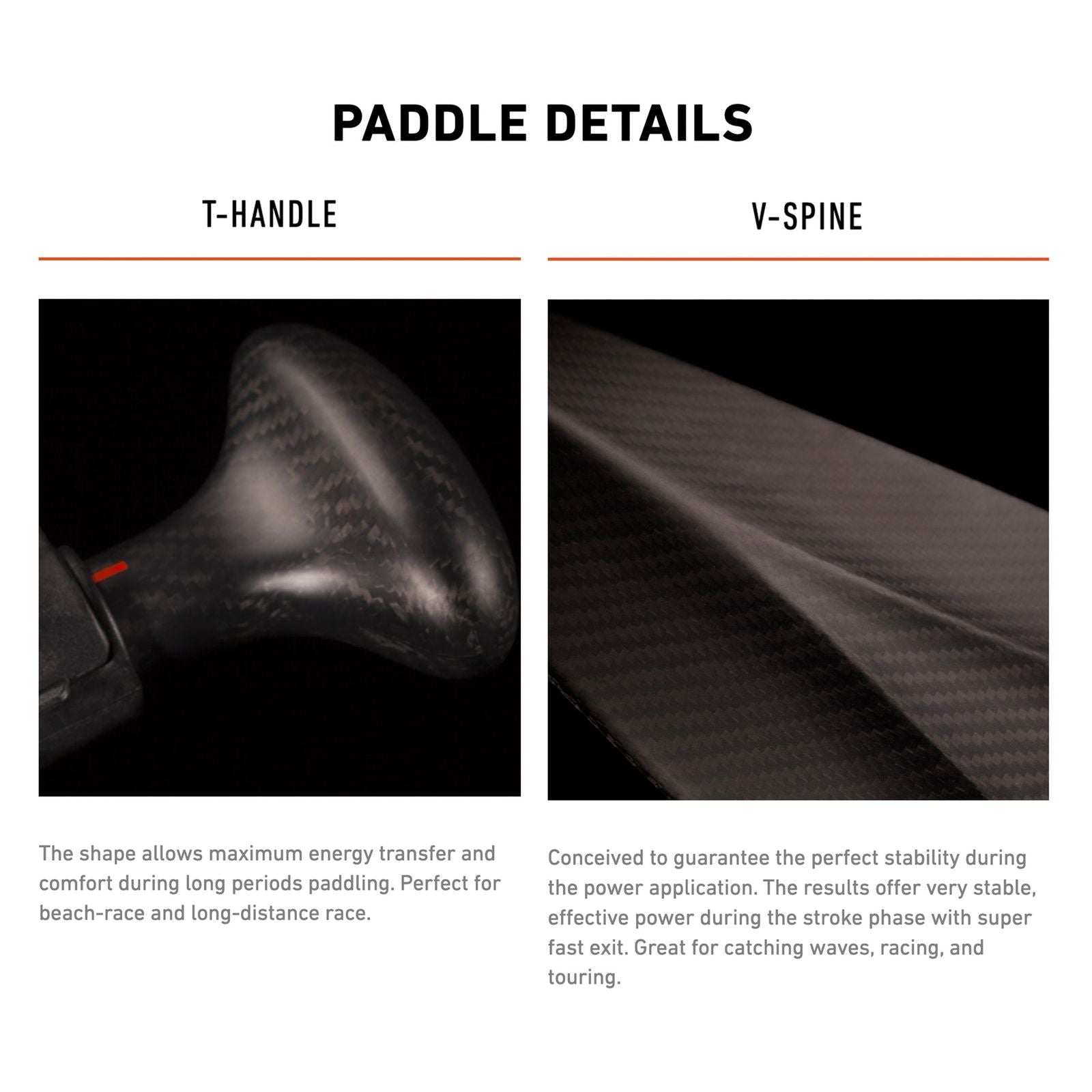 - Diseño de forma en V que mejora la eficiencia de la palada.