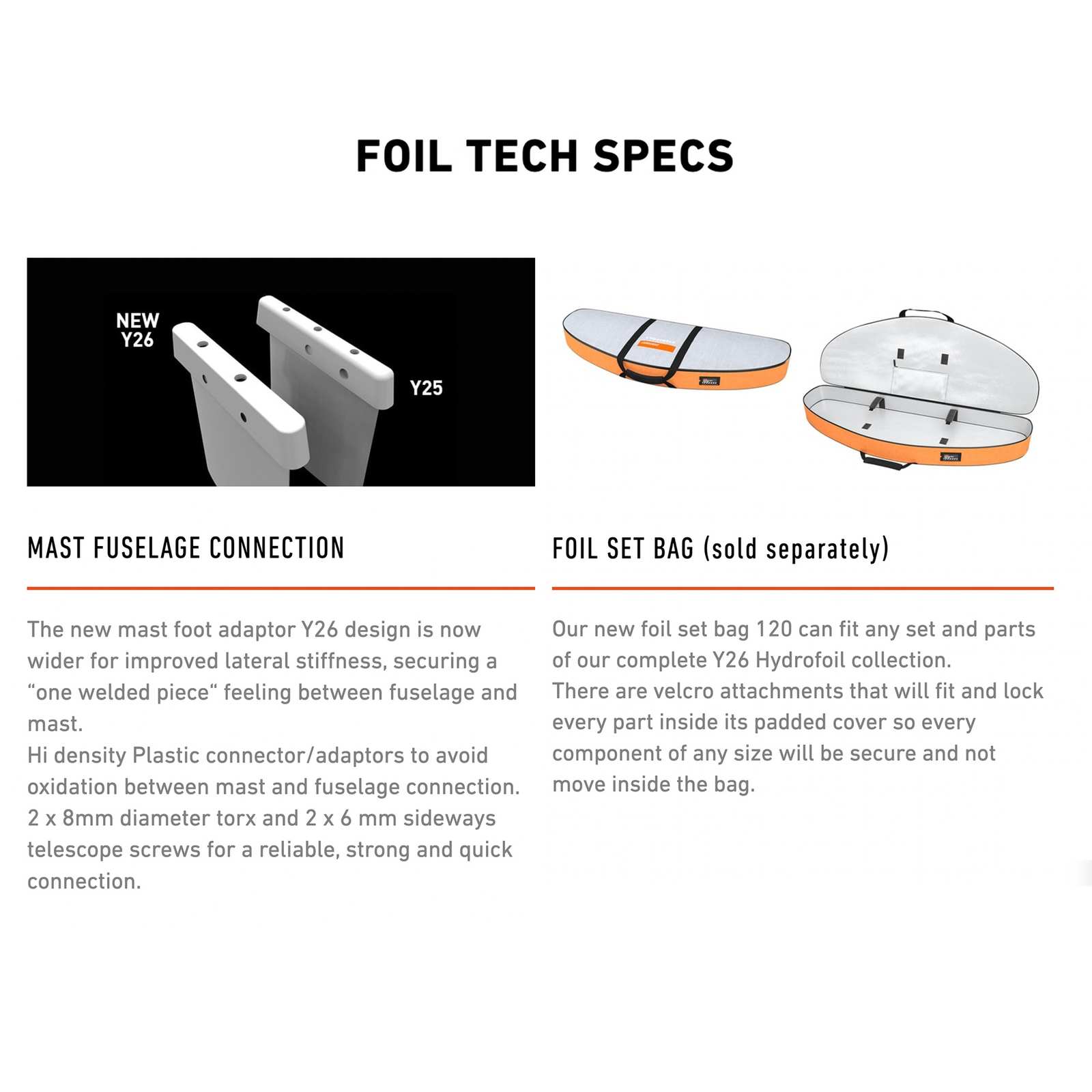 - Adaptador de pie de mástil de alta densidad para mejorar la rigidez lateral, evitando la oxidación entre el mástil y el fuselaje.