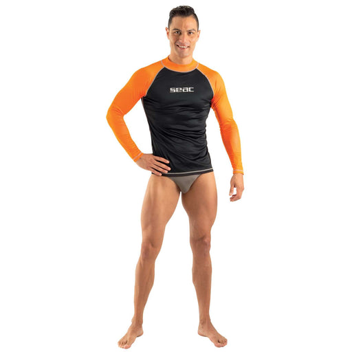 Rash Guard T-Sun Largo Hombre Negro-Naranja M Seac 155-24-M Descripción: El Rash Guard T-Sun de Seac es la solución perfecta para quienes buscan p...