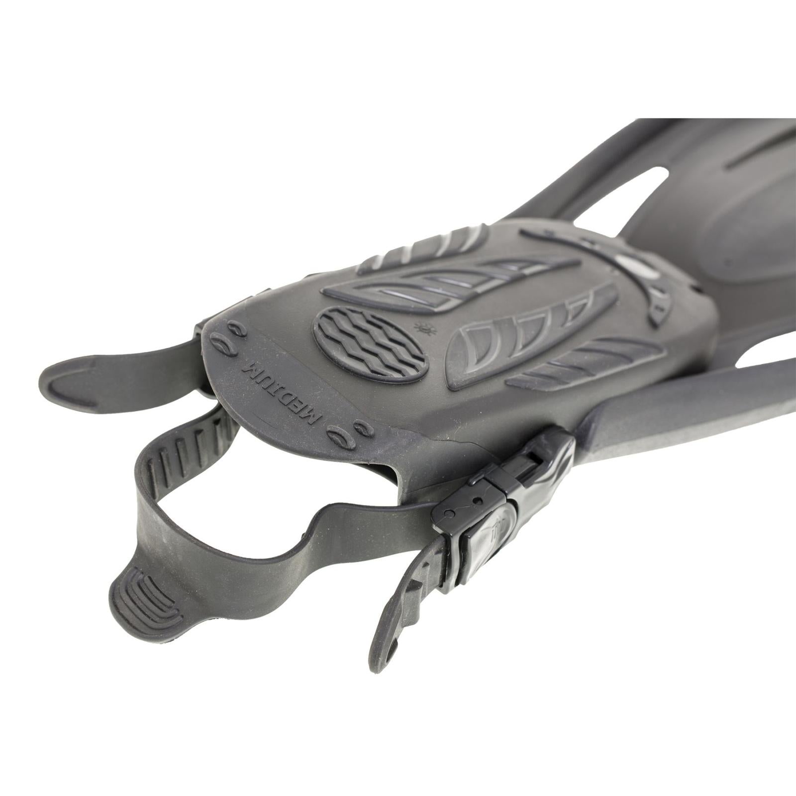 Las Aletas de Buceo Cayman Abiertas Negras de Marlin son la elección perfecta para quienes buscan comodidad y rendimiento en sus inmersiones. Diseñadas para usarse con botas de neopreno, estas aletas cuentan con un piecillo suave fabricado en goma termoplástica (TPR), que proporciona un ajuste cómodo y reduce la fatiga durante el buceo. Su construcción en tecnopolímero y la innovadora forma de la hoja mejoran la eficiencia del movimiento bajo el agua, permitiendo una propulsión óptima con menor esfuerzo. Equipadas con un sistema de ajuste rápido y hebillas de liberación rápida, estas aletas son fáciles de poner y quitar, lo que resulta ideal al final de un largo día de buceo. Su diseño aerodinámico y las ranuras de reducción de resistencia garantizan que cada patada cuente, haciendo de cada inmersión una experiencia más placentera y efectiva.