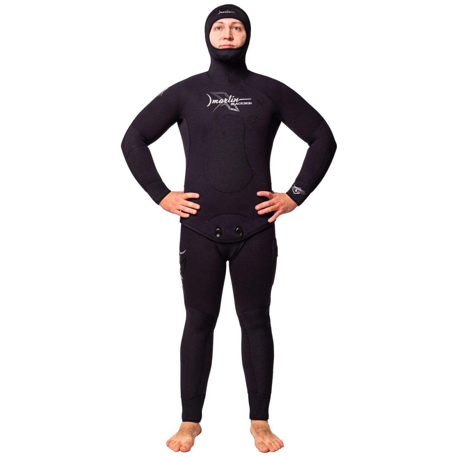 El traje de buceo completo Marlin Blackskin está diseñado específicamente para la pesca submarina, proporcionando una protección excepcional y máxima comodidad. Fabricado con neopreno de alta calidad y ecológico, cuenta con un interior de celda abierta que permite un buen aislamiento térmico. Su construcción se basa en 44 partes anatómicas, lo que garantiza un ajuste perfecto y una libertad de movimiento inigualable. Entre sus innovaciones, destaca la capucha con inserciones de neopreno que evitan el contacto incómodo con las orejas, y un soporte para cuchillo que añade funcionalidad adicional. La durabilidad se ve reforzada gracias al material Duratex en codos y rodillas, ideal para enfrentar entornos exigentes. Este traje no solo mejora el rendimiento durante la pesca submarina, sino que también está diseñado para minimizar la resistencia y maximizar la propulsión con aletas.